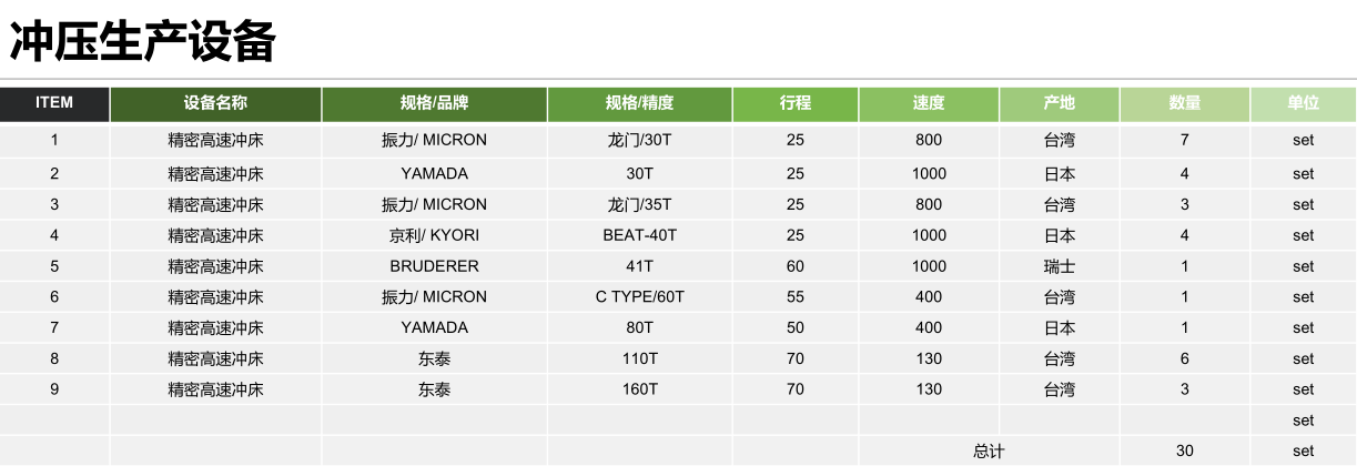 冲压设备清单